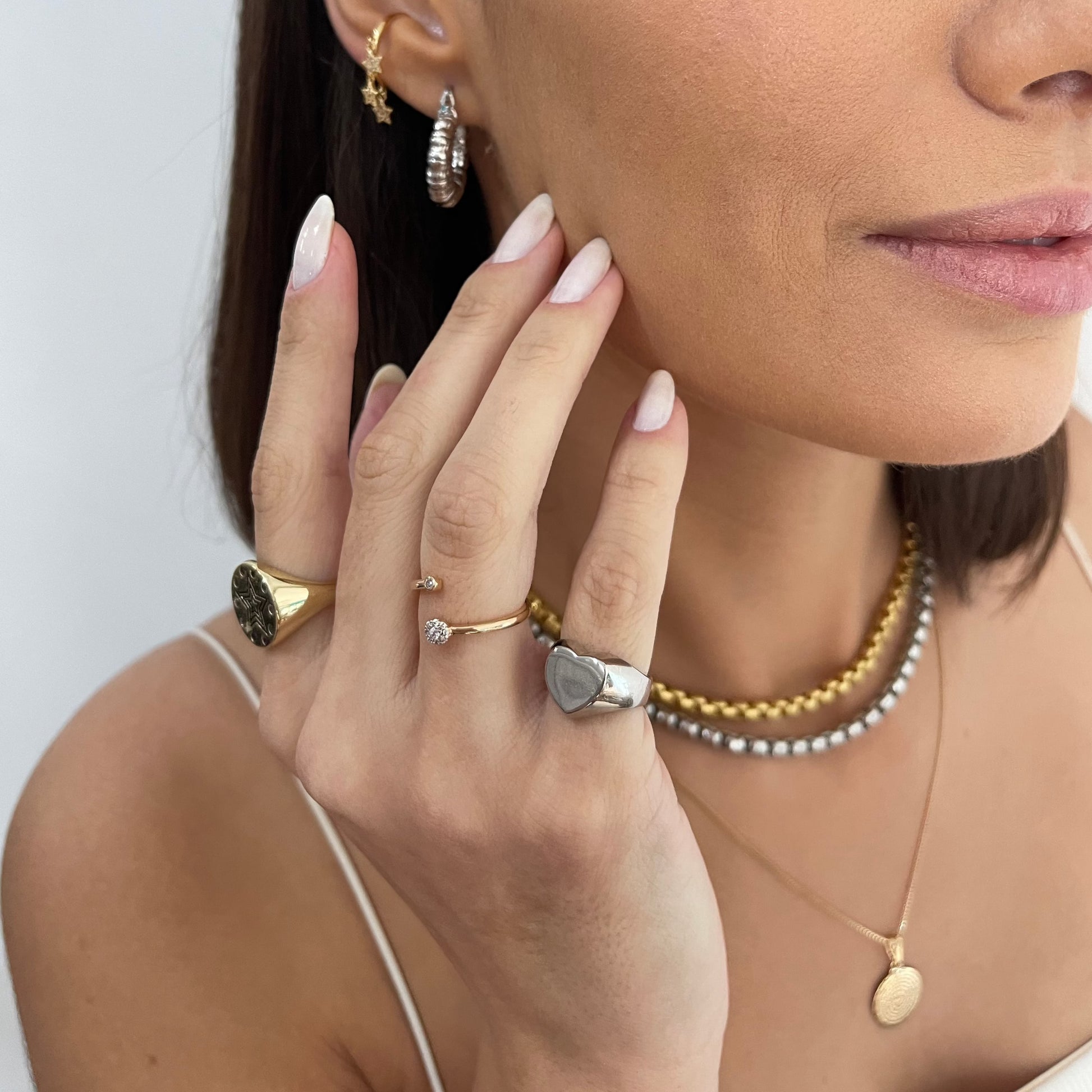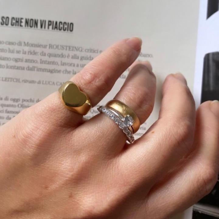 •• Mix de Anéis•• Para usar vários anéis no mesmo dedo considere que eles devem possuir tamanhos diferentes para que fiquem confortáveis! Dependendo da quantidade e posição que eles ficam no dedo, observe que a espessura do dedo varia. Para usar vários anéis no mesmo dedo considere que eles devem possuir tamanhos diferentes para que vivam mais confortáveis. Observe que a espessura do dedo pode variar. Semijoia: banho 10 milésimos de ouro18k com dupla camada de Verniz. Metal Nobre