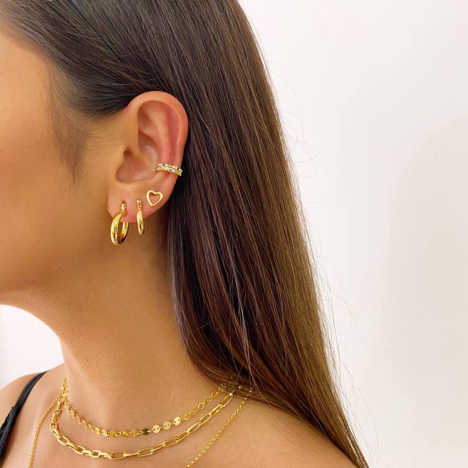 Semijoia banhada com total de 10 milésimos de ouro e dupla camada de Verniz Italiano (verniz de alta joalheria). Valor referente ao par, os demais itens ilustrados que formam um Mix m com essa peça não estão inclusos neste produto. Para adquiri-los, adicione-os separadamente ao carrinho.
