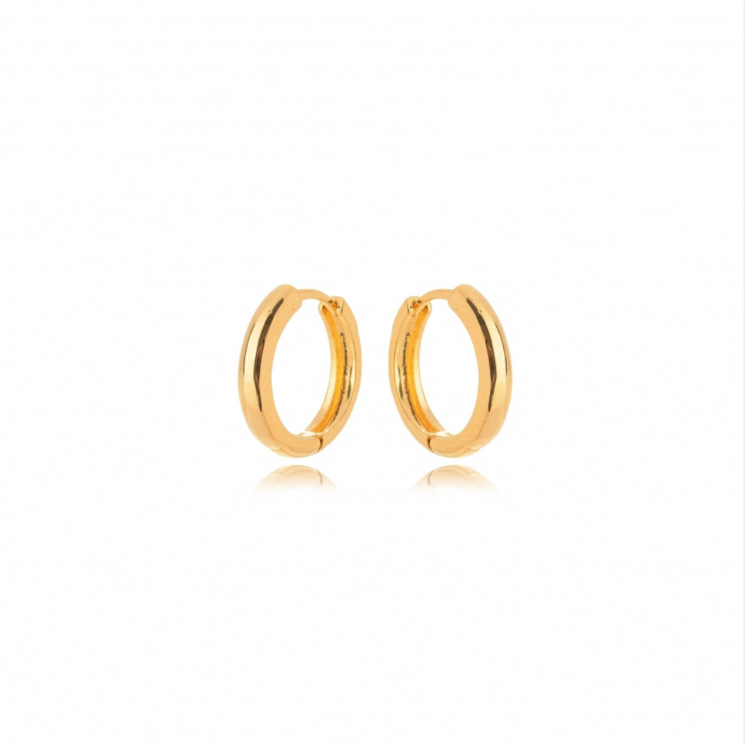 Brinco no formato de Argola fechado, fecho em Click - articulado (abre e fecha). Semijoia banhada com total de 10 milésimos de ouro e dupla camada de Verniz Italiano (o melhor verniz existente na alta joalheria). VEM O PAR