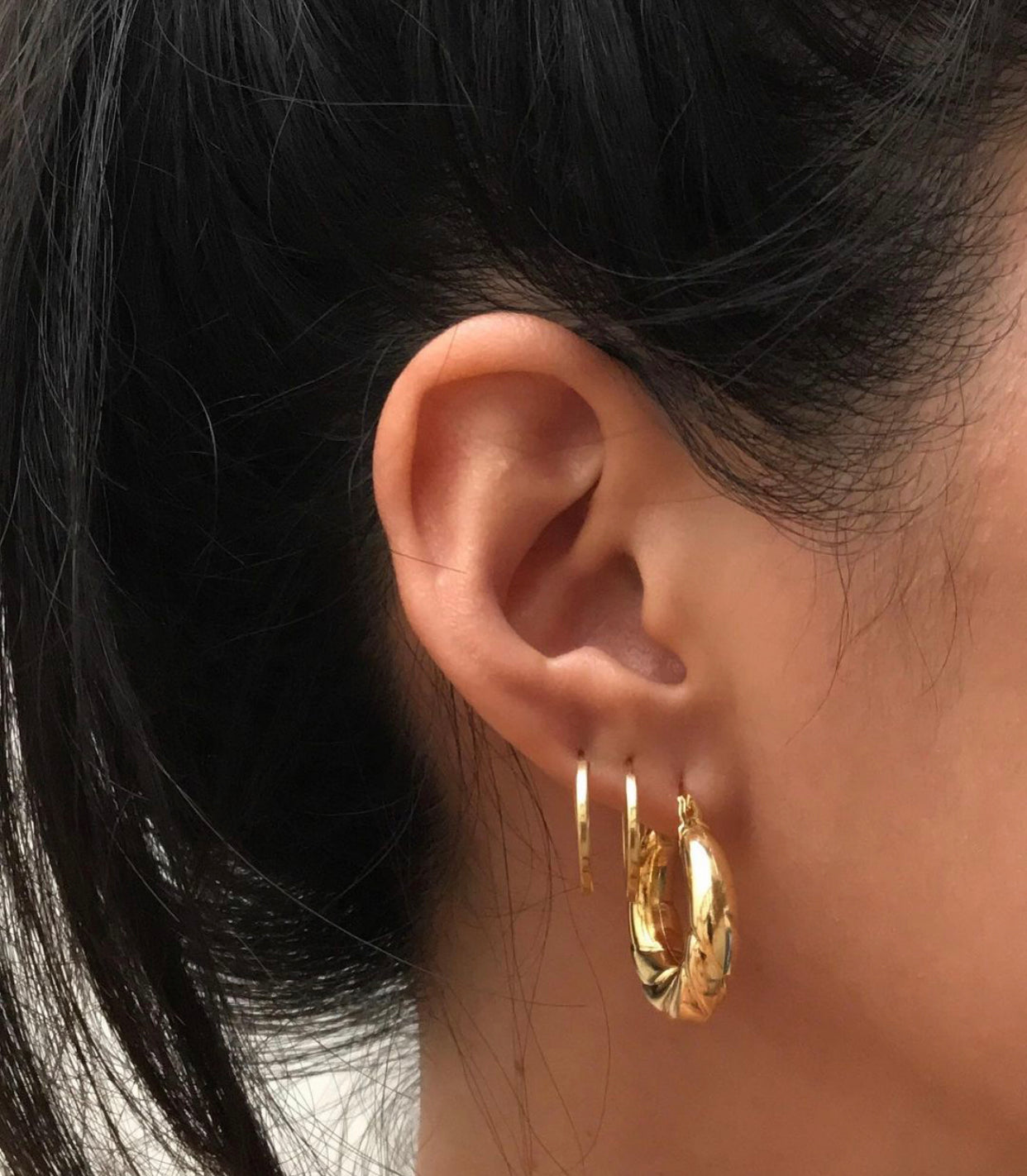 Kit com 2 argolas tamanho G e M. Semijoia banhada com total de 10 milésimos de ouro e dupla camada de Verniz Italiano (verniz de alta joalheria). Valor referente ao par, os demais itens ilustrados que formam um Mix m com essa peça não estão inclusos neste produto. Para adquiri-los, adicione-os separadamente ao carrinho.