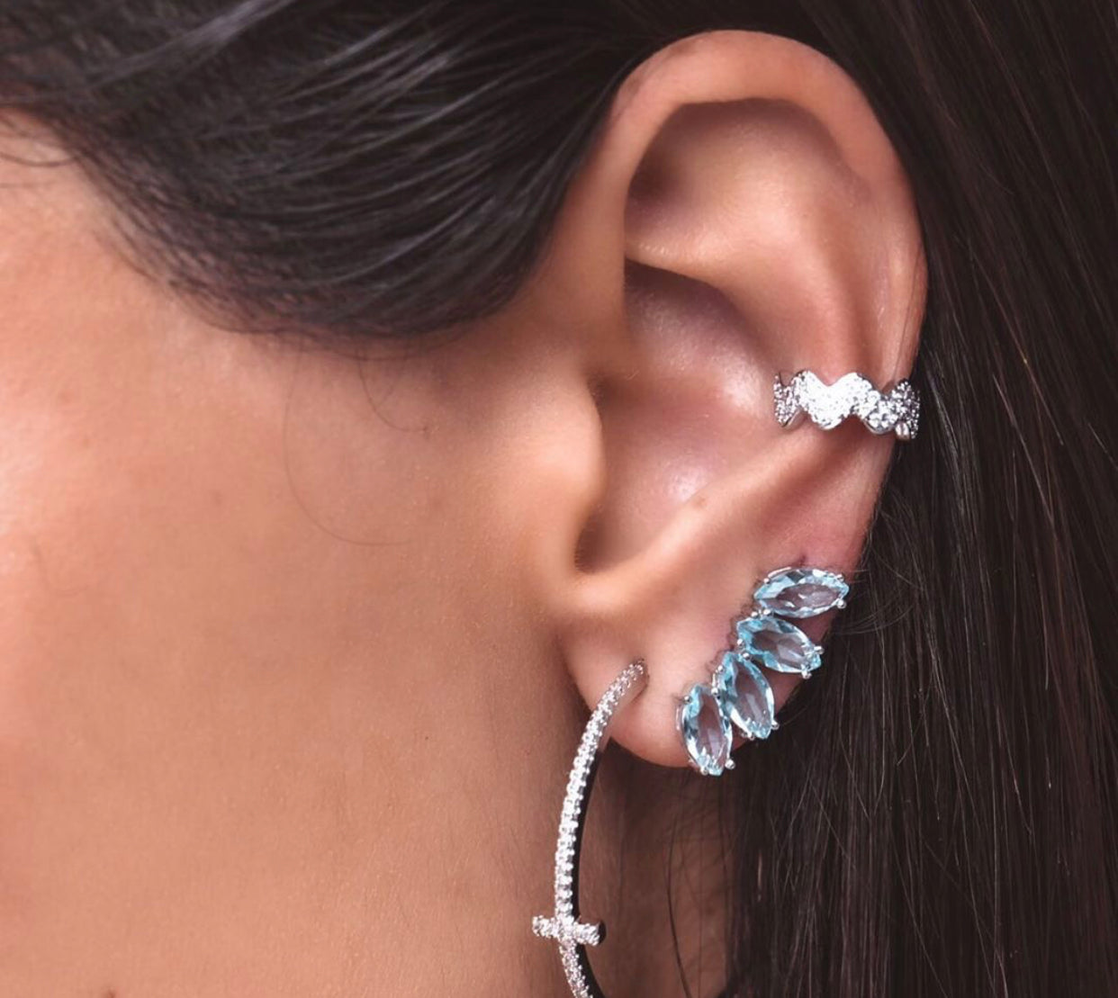 Piercing Fake de orelha para cartilagem Conch. Possui designer anatômico para não causar incômodo ao usar ou a sensação de “pressão” na cartilagem da orelha.